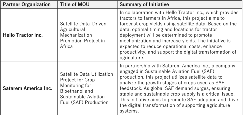 The details of the MOUs signed by Space Shift are as follows.