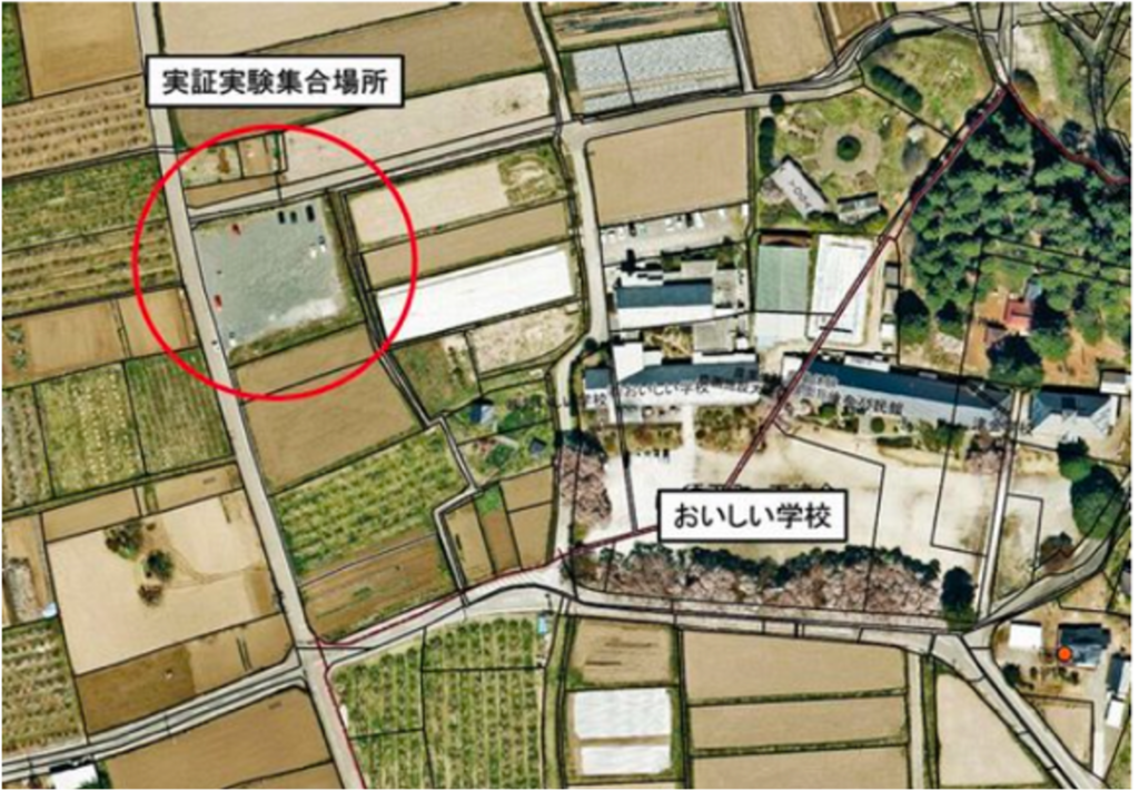 ※下図の「実証実験集合場所」へお越しいただき、受付後、車で調査地へ送迎します。