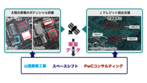 山陰酸素工業では地域の脱炭素化社会に向けた取り組みとして、先進的な技術を持つベンチャー企業などと積極的に連携し、CO2の排出量可視化から削減、カーボンクレジット導入まで、ワンストップの脱炭素化支援サービス構築を目指しております。今回の実証事業では、これまでにスペースシフトとPwCコンサルティングが培ってきた地球観測衛星のデータ解析技術を活用し、以下の2つの事業に取り組みます。