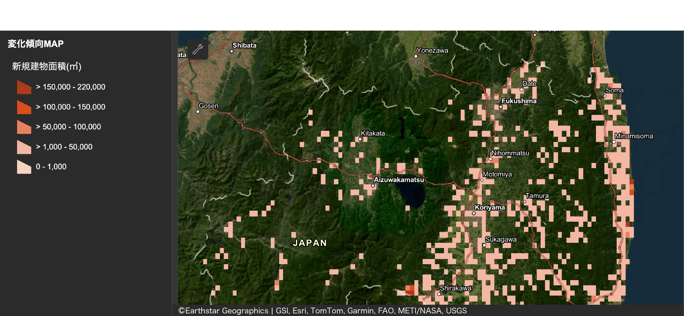 土地活用や建物の開発が進んでいるエリアをAIが自動的に可視化