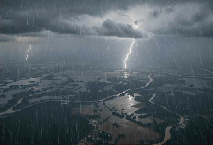 SAR 衛星データと AI を活用し、指定エリア内における浸水・土砂崩落箇所を自動検出するサービスです